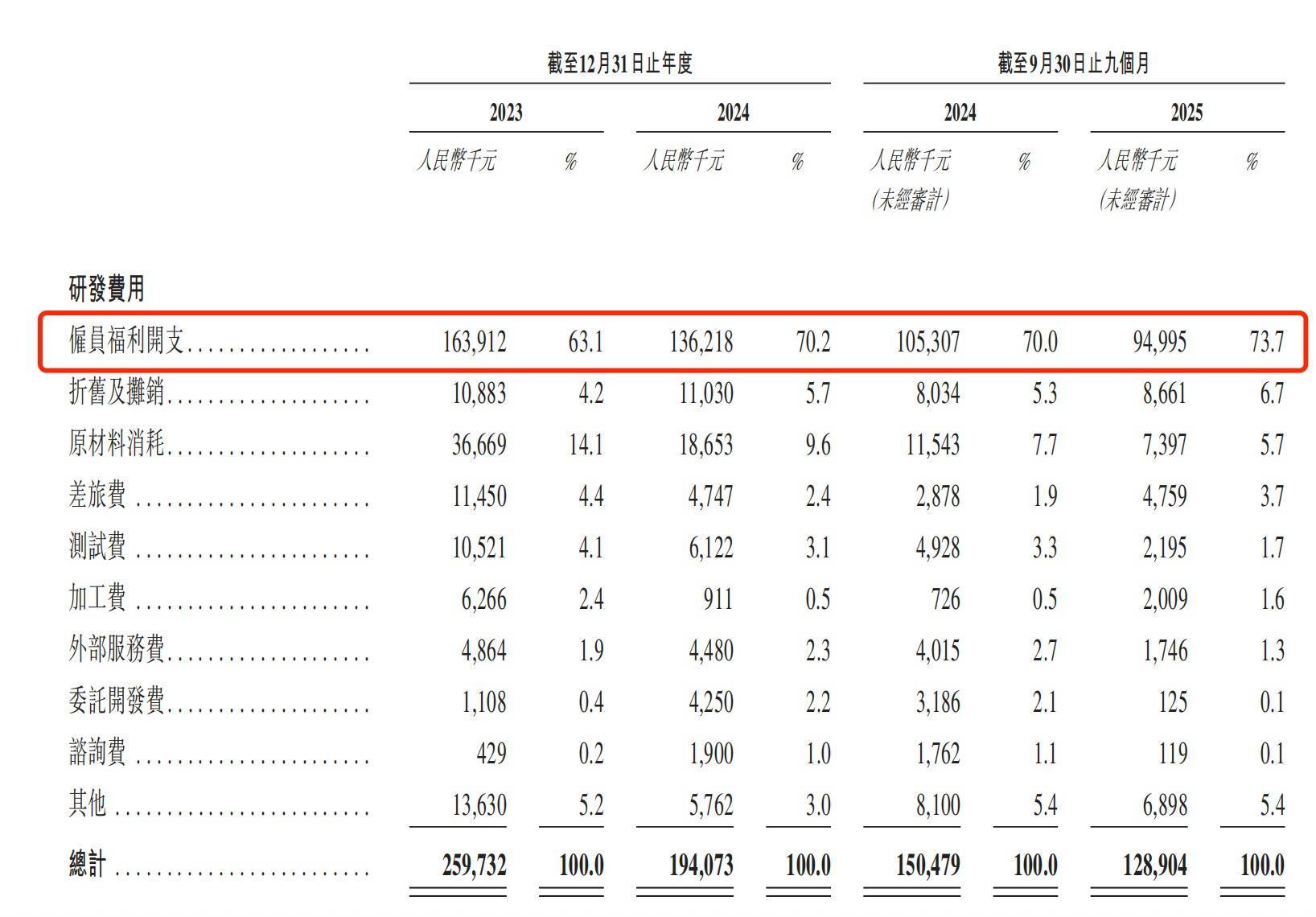 这种投入的收缩,直接反映了公司在盈利压力下的现实选择。 截至2025年9月30日,科大智能研发团队达758人,占员工总数的44.2%。这也导致研发费用结构呈现显著的“重人力”特征:雇员福利开支占比始终维持在60%以上的高位。