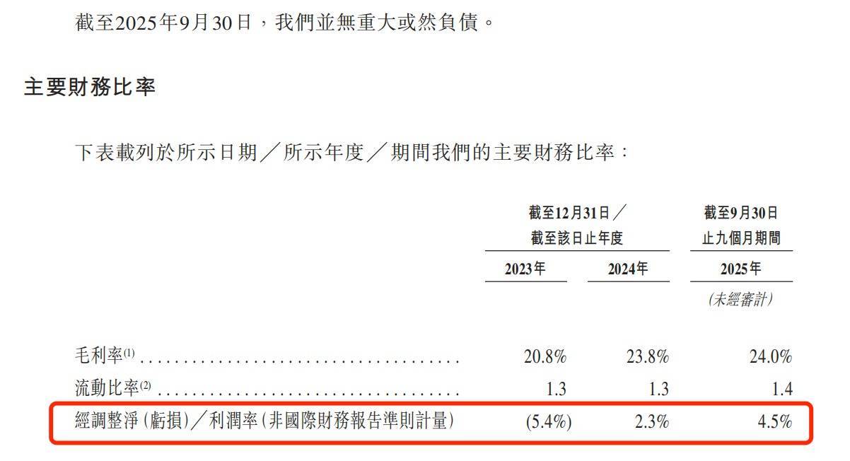 招股书显示,公司净利润率长期徘徊在6%以下,且业绩波动剧烈:2023年亏损1.71亿元,2024年虽营收回落至26.87亿元并扭亏为盈,但2025年前三季度营收同比仅微增1.2%至19亿元,经调整净利润率仅为4.5%。