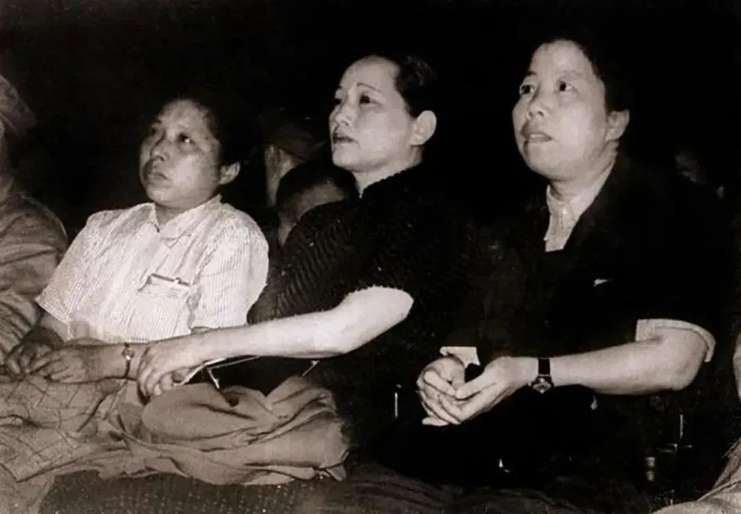 ▲1949年6月30日,廖梦醒(左)、宋庆龄(中)、邓颖超(右)等人,出席上海市党政军民庆祝中国共产党成立28周年大会。